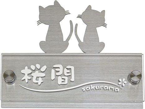 Amazon かわいい表札 クリアアレンジ ステンレス 150mm幅 ネコ 表札